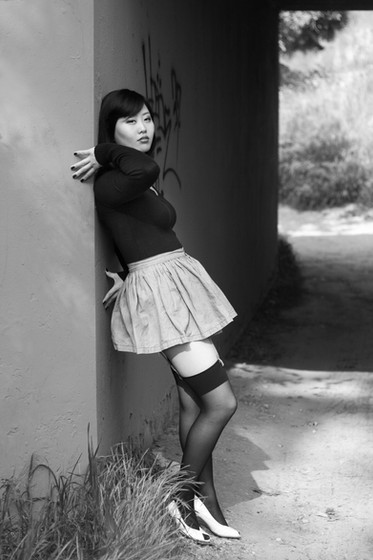 #asian #bra #bw #girl #heels #high #kilt #lingerie #short #skirt #stockings #stool #uniform #woman #blackandwhite #brassiere #highheels #plaid #provocative #whitestockings