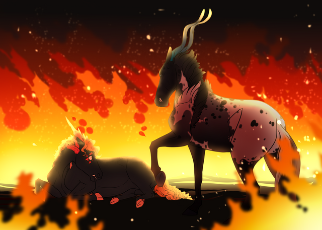 Being part of the Borga pack meant he had such duties! Though it was still awe inspiring to actually be able to see deities, specifically Aga when the team rushed to the site of the fire. Unlike the Borga and Meelanik packs who rarely saw their deities, the Aga packs had always seemed to dwell closely with theirs. The pack members tried not to meddle in the affairs of the two more estranged groups. Despite many knowing of their current wars and struggle for peace. But when those cursed by Meelanik inflicted chaos onto their lands they often had to call for backup. Only the Borga pack had enough skill to know how to defuse the fires caused by them.