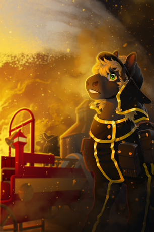 Galo was a firefighter through and through - but he was also a showoff. He didn’t miss the opportunity to loudly assure Aga that he’d take care of the fire and fire starters alike, and with a gallant puff of his chest went rushing into the flaming forest despite his comrades telling him to wait. He was sure that the unamused expression he caught on Aga’s face was directed to anyone but him.