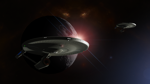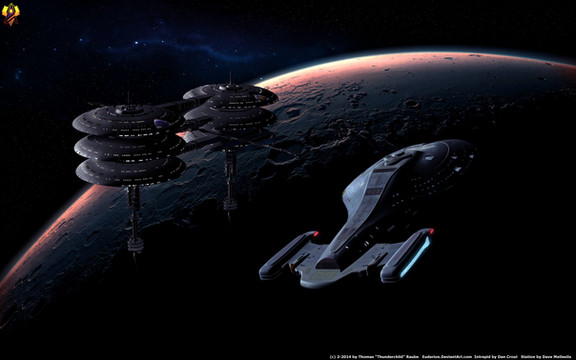 Very nice looking, especially with the starbase towards the left of the ship. Though I'm getting the feeling Jack Sparrow is in the captain's chair.