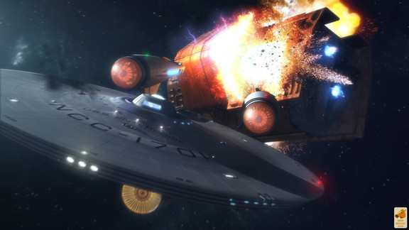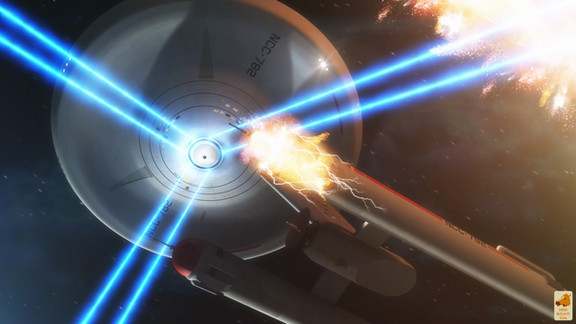 The USS excalibur approaches the enterprise under the assumption that her weapons systems are configured for simulated fire, until she passes alongside and two full powered phaser blasts tear into the excaliburs engineering section