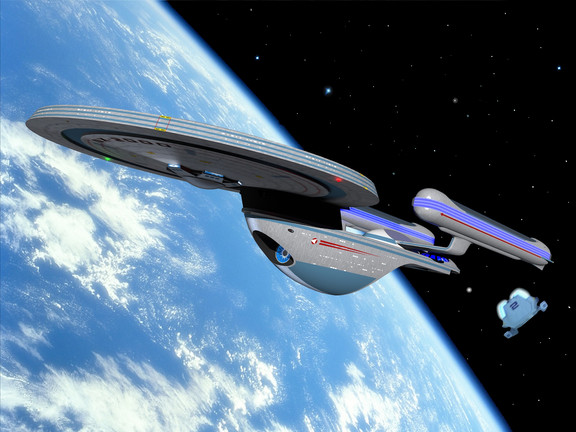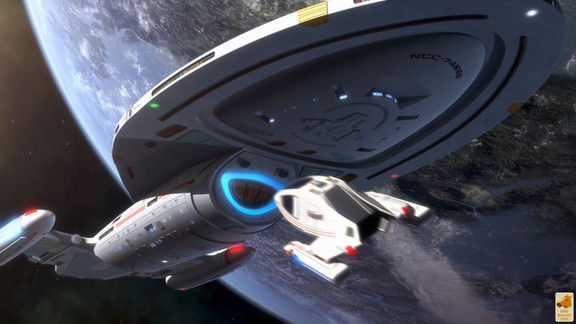 Beautiful picture. I especially love the shuttlecraft in the foregound