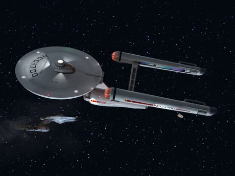 looking good as always. I like the reflections. now if you'd blur them just a little and added some specularity to the hull materials, that'd make it look just right as some modernized TOS should