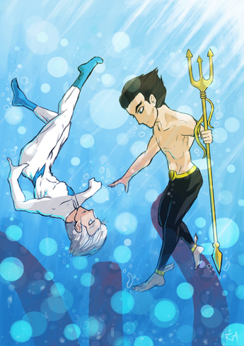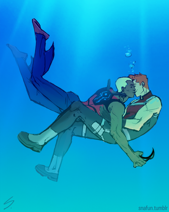 Because there is not possible way that Roy is saving Kal from drowning, I'm gonna go ahead and take this as a metphor for Roy saving Kaldur from drowning in the pressure he feels as a leader, the neglect he feels from his teammates always (even though he know's they don't mean to) assuming that he's invincible and never needs a hand or a shoulder to cry one, and the regection he still feels over the fact that Tula, the girl of his dreams who was also one of his greatest friends, hooked up with his other BEST FRIEND, and the dact this all would have been avoided if he wasn't such a good, wonderful, selfless person.