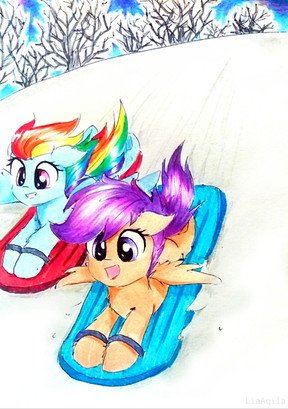 #clouds #cmc #mlp #sledding #snow #thefloatingtree #mlpmylittlepony #scootaloo #mylittleponyfriendshipismagic #cutiemarkcrusaders
