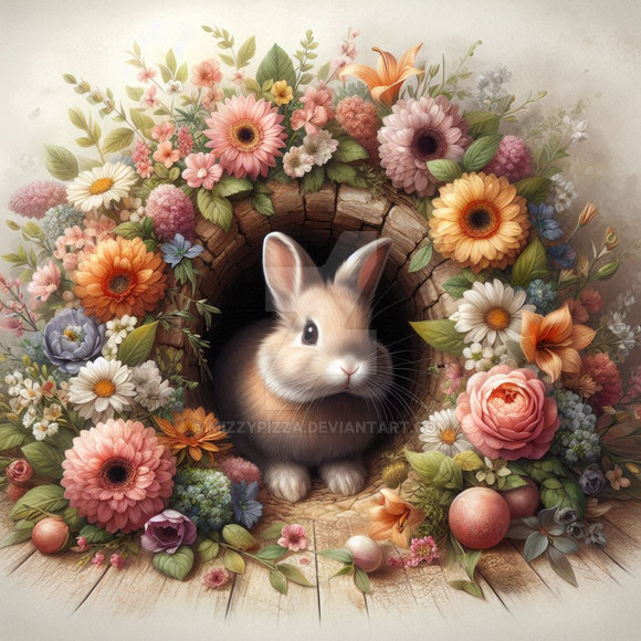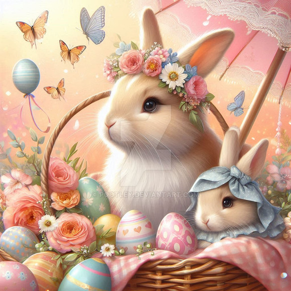#animals #bird #bunny #butterfly #color #digitalart #easter #floral #flowers #holiday #illustration #painting #rabbit #spring