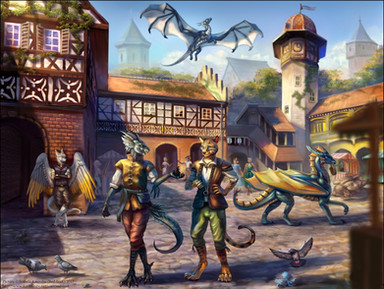Just a scene of my human and I taking a little break from the heat after a patrol. I'm still completely blown away by the details in this artwork! Thank you sooo much Vey, I love it!Zudic & Nick by: Me