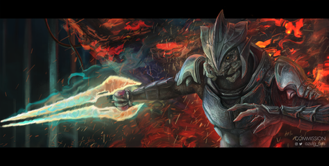 The details are amazing! Great contrast between the water-like and the fire-like effects! Great drawing of the Arbiter!