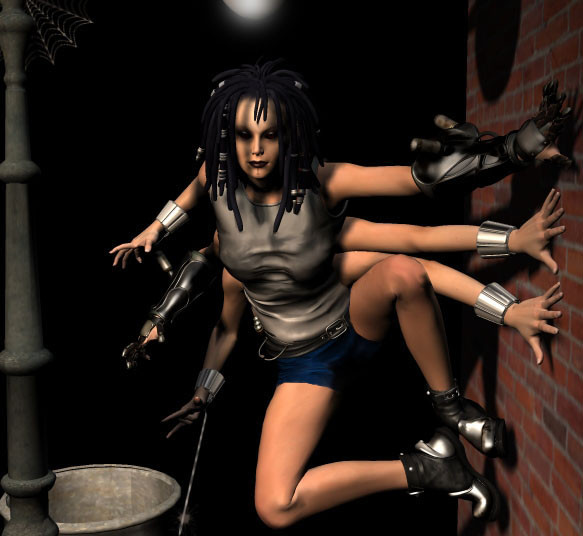 Awesome I in the works of rendering her but you did it first, you should have given her white hair though and remember she has 2 cybernetic arms, I would have suggested using the Bot for V4 if that works.