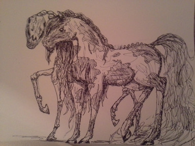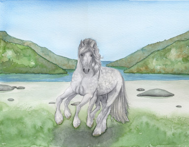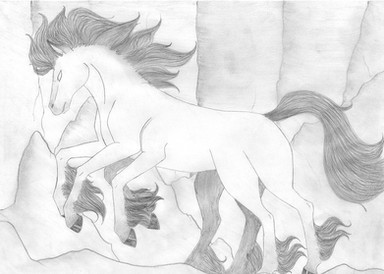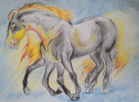 Here's an illustration of one of his children, I made Sleipnir's hair look like Loki's and on the left, Sleipnir's name in Old Norse.