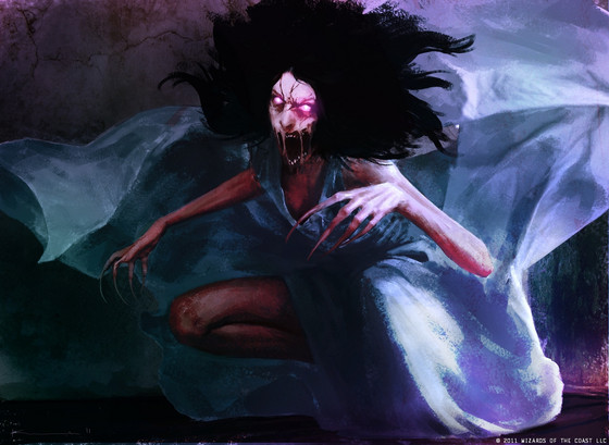 I like your version a lot! It indeed gives me the chills.. Blood red eyes and pale skin... with no clear view of her feet.. the posture is brilliant!