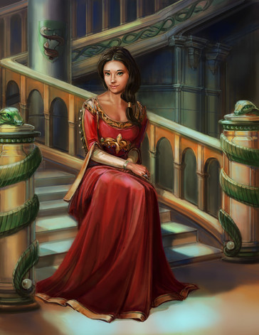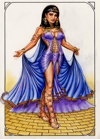 She has a wonderful face. She looks both bold and proud as well as a bit surprised. The colours of her dress match her skin colour very well.