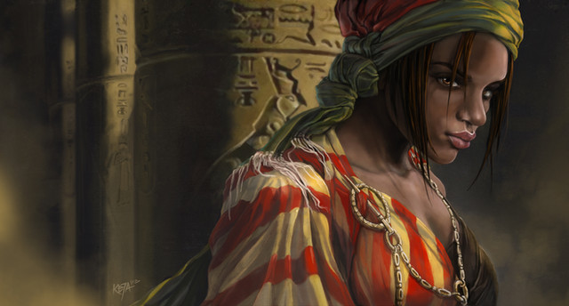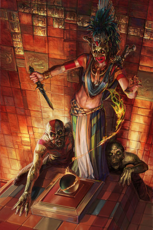 The sacred dagger in her possession, the sorceress Hophet-pu arrived at the magical stone sphinx. "The legend is that the one who is able to smear the blood of a virgin shed by the sacred dagger of Osiris will bring the sphinx to life and have mastery over it. Now, where to find a virgin ... " Hophet-pu's quest promised to be a long one!
