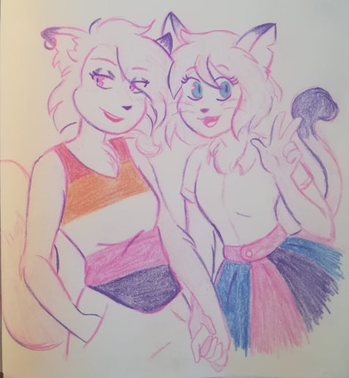 Both furry gals look quite cute together for this colored picture you've done!