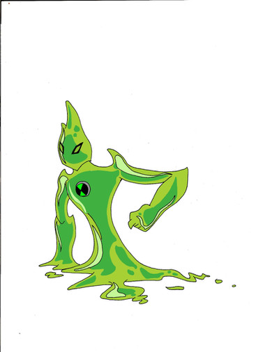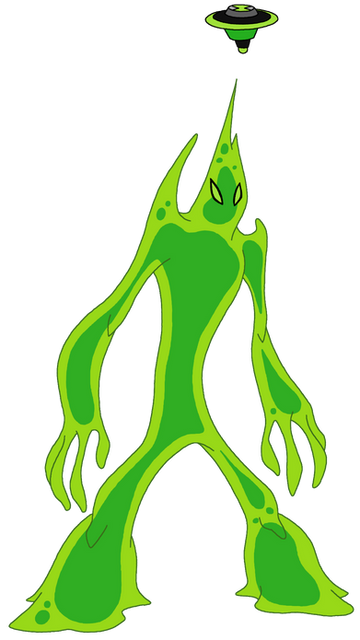 Goop from Ben 10 (Alien Force)Powers: Goop is a 200lb pile of slime, his artificial gravity unit can manipulate this slime to change shape, stretch, fight and melt anything.