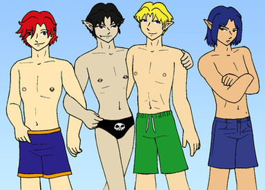 Awesomeness! Love this pic cuz 1) finn is just too hot! and in speedo's! *drools* 2) I love dark ace, he just looks like he wants a hug! and 3) gotta love stork! XD