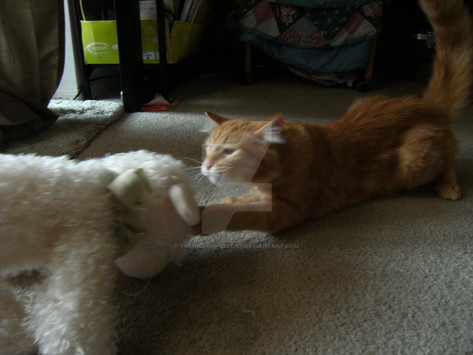 He unraveled the yarn ball. I may have...turned away for a minute or two, thus unable to prevent him from doing so.