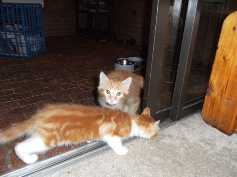 The Trio hanging out between the curtains and the window.Dos at the very bottom.