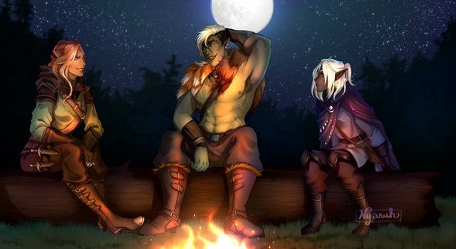 #adventure #bonfire #characterdesign #dnd #dndart #dungeonsanddragons #fantasy #fantasyart #illustration #nighttime #peaceful #roleplaycharacter #woods #dndcharacters #dnddungeonsanddragons #artworkdigital