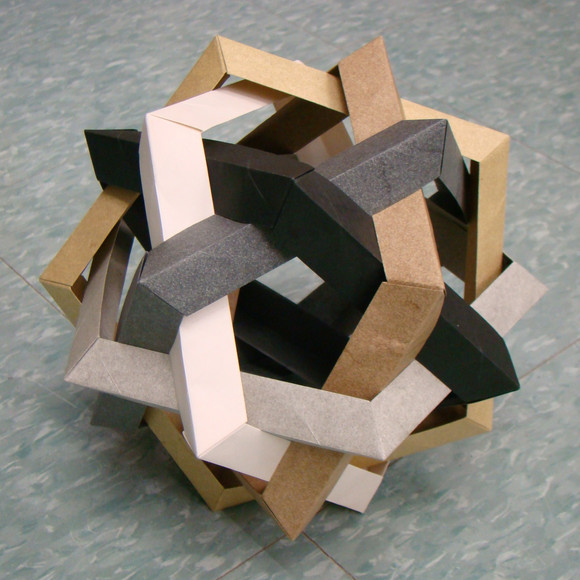 My ring of "diamond-window" cubes. 12 cubes, 12 pieces to each cube; 144 pieces total. Each cube took about an hour to make.Related content