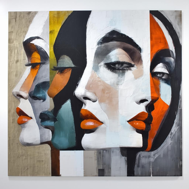 I think it's the use of tape to cover an area. Then paint in the area that's not taped. So on, and then in the end the portrait. But I agree! Amazing stuff