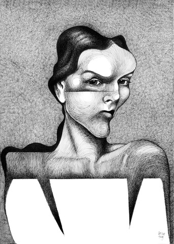 I enjoy how soft the skin seems, but at the same time, it seems obscure, without too much detail, but enough to make it clear. It goes well with the straight white lines and this paint applied around the model.