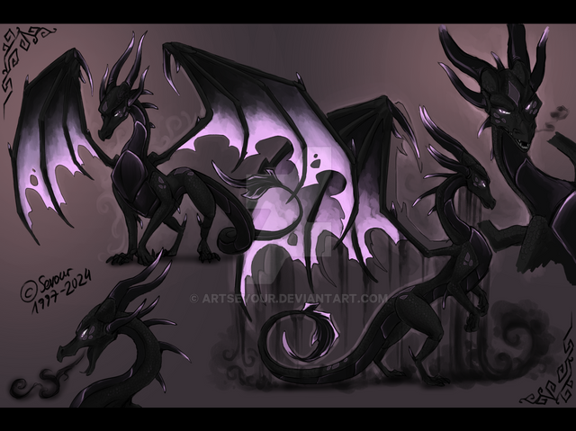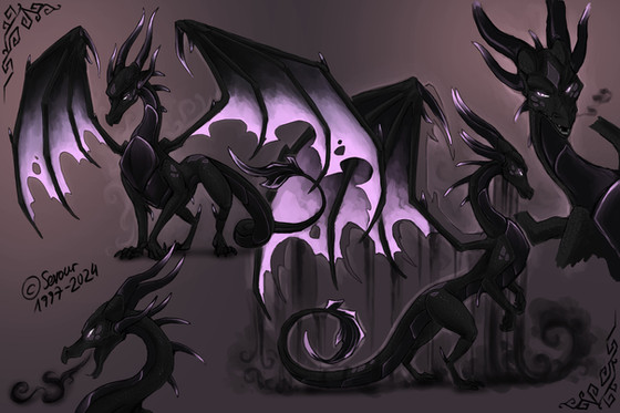Shadow dragons have some of the most unusual elemental abilities of any dragons, with one of their main ones being to turn completely incorporeal and become somewhat of a shadow themself. Young shadow dragons can only really avoid hits when they first start, as they work to master it shadow dragons can give their body the same form as their shadow breath and then use their claws even while incorporeal. Shadow dragons breath is a bit odd as well, while the 'shadow flame' itself is naturally hot it's not nearly as hot as actual fire, the real damage comes from the fact that it leaves small but deep cuts all over anyone hit by it. The feeling of being hit with a shadow dragon's breath is often described as feeling like being hit by a hot cloud of broken glass.