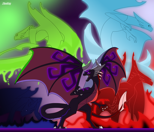 Poison dragons are one of the few with a wide range of physical traits tied to their element, with different brightly colored patterns and corresponding types of venom with varying different effects. Though these venomous dragons are often considered 'true' poison dragons, the original dragons of this element were actually the 'acid dragons'. Though they don't have any of the physical venomous attributes the others have, these acid dragons posses all the basic abilities of the poison element that were passed on to the venom dragons. Spitting hot corrosive acid, lacing their tail spikes with said acid, smelling a lot like a science lab, etc.