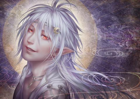 I love the white and purple and gold color theme. His hair looks so soft, and his clothing is gorgeous!