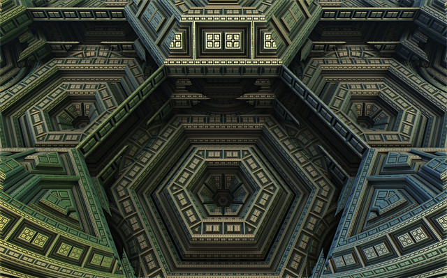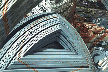 Mandelbulb 3D and Photoshop.A zoomed in and slightly altered version of Cathedral.