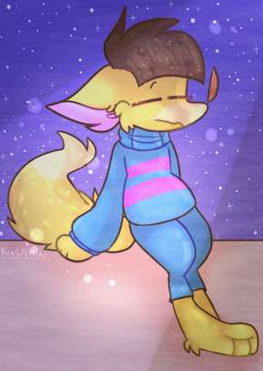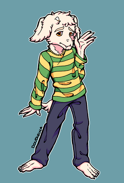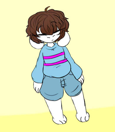 So I made a Humantale AU back in December, but I finally started digitalizing it about 2 months ago. This is actually a semi old picture (by that i mean 2 months) and I've already abandoned the project for the time being. I finished Toriel, and she'll be up soon, but after that there won't be anymore. Instead I'll be posting Art Fight attacks, and maybe some more human Security Breach characters.But, anyway, Humantale! This is Frisk as a monster, I went with goat cause well, idk, fits, I guess. Don't ask how they got out. Climbed, maybe? Not really here for story, here for designs.