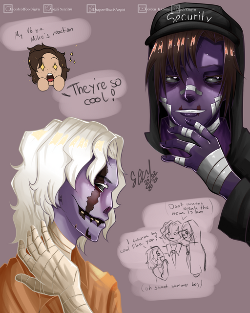 I drew these months ago, and meant to post them, just never did. Here they are, anyway. Third one is best nerd, Logan. Drew him with a ink pen and a bunch of sharpies (as the title implies) As well as a pink highlighter for the hearts.Previous is Patton