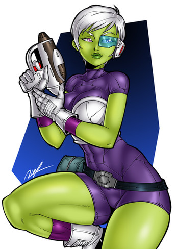 I absolutely love this piece! She looks so sexy and spacey, it's perfect! I hope you decided to do more with her in the future!