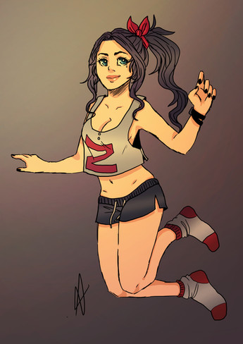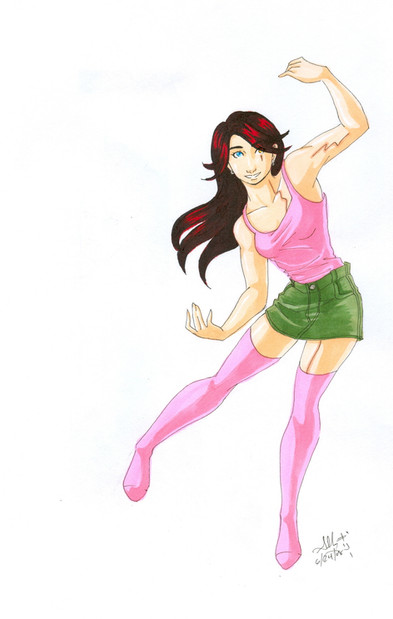 Cute ans sexy! Love the pose and her expression! Wonderful sense of prespective.