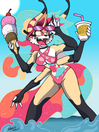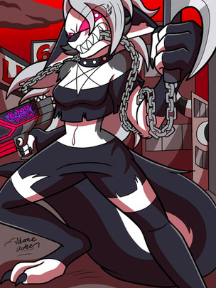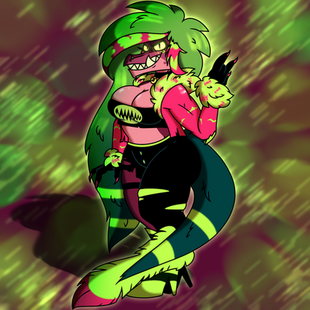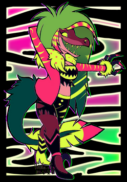 #digitalart #fanart #characterdesign #cartoon #monster #scalie #dinosaur #female #rave #zeezi #hazbinhotel #hazbinhotelfanart