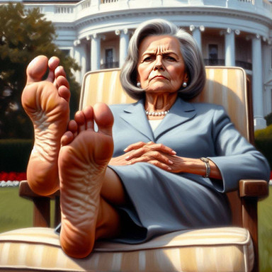 She chuckles and crosses her legs, resting her head on her hand as she leans back in her seat.