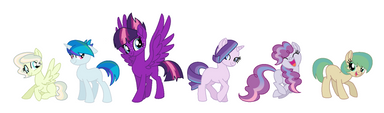 Family: Fluttershy (Adoptive mother, "Momma"), Tempest Shadow (Adoptive mother, "Mother"), Pitter Patter (Older Sibling)