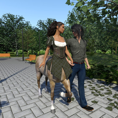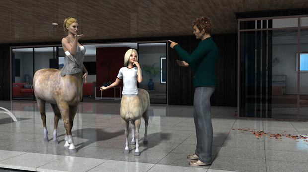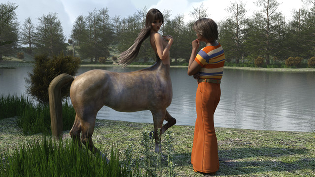 The girl seems to be accepting the centaur quite matter-of-factly. They must be common or at least known-of in this universe, eh?