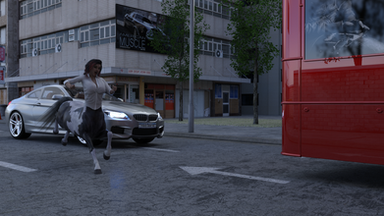 I also wonder how he gets around other than galloping. I don't think he'd fit in as car. A van with the driver's seat removed, maybe.