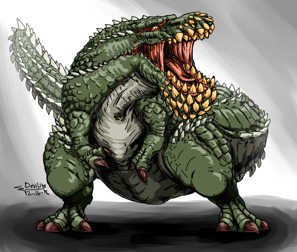 I really like Monster Hunter, but never owned it. Here's one of my favorite monsters, the gargantuan deviljho.EDIT 3/27/14 - Colored.