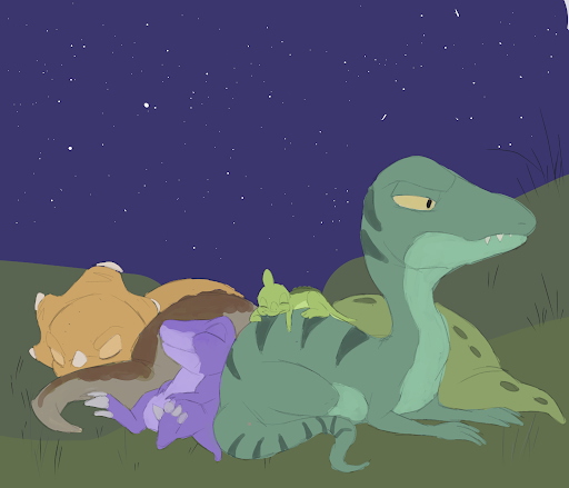 When I see that expression it screams I rather be anywhere but here lol XD still wanna hug big dino tho ;~;