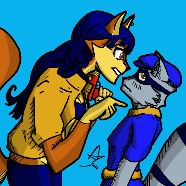 More sly cooper fan art.Since Sly and Carmelita are together, this scenario was imminent.