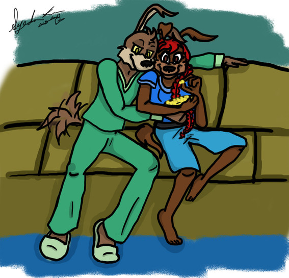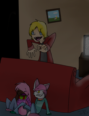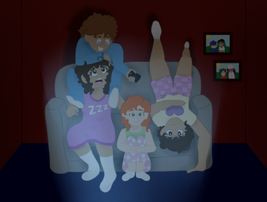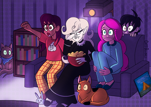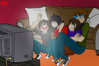 I haven't contributed to the ship enough yet, so here is TF, Vanilla, and Friends getting together at TF's place for a pajama movie night.Vanilla belongs to the lovely