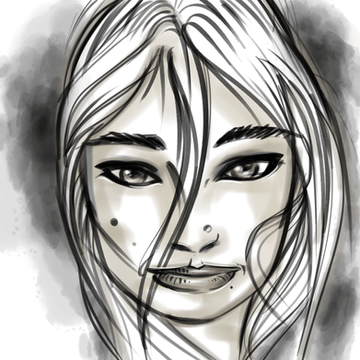 A really neat idea! It looks like you had a lot of fun with this one! I love the face shape, and the small details like the freckles. I dont know if I personally like the added pink over the grey. (but thats just me π) I like the color of the eyes. And the overall expression. The lips and teeth are on point! I really like the expressive lines to,, I would have monitored a couple a little more, like the white lines in the eyebrows. The spot in the left corner, I think actually works pretty well with the painting. I feel like it would have been to heavy to add more orange to that corner. overall, I really like how fun this is. ^-^ Good work!Β