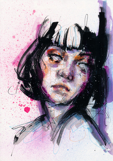 This style is so pretty! The shadows are just perfect. Im kinda concerned by those white lines on eyebrows, nose and left cheek. They look kinda random - you stopped with the rest of the lines when the face began, and the white lines are still there. But it doesnt make the piece bad, of course not - i still really like it. And the colors are gorgeous