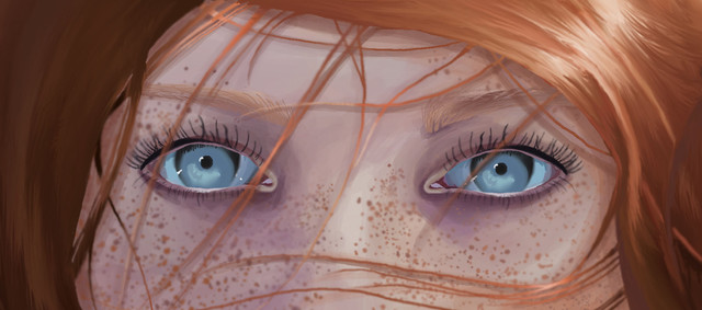 I love green eyes . Freckles are awesome too in my opinion. I really like your stylized take on this piece. Abstract yet realistic at the same time. Good choice to only truly color the eyes, freckles and hair, really makes them pop (especially the eyes). Fantastic work .Β