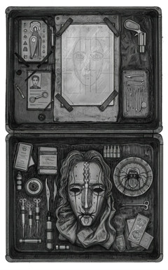 To me it seems almost like an evidence photo (paper clip, date written in corner), although it is depicted with a lot of wear and tear, as if it is carried around by someone like a souvenir or something. Well done, creepy and thought provoking.