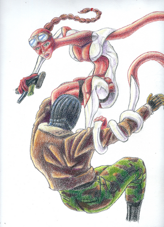 I have nothing against noodles, but elongated human is much harder, and I just wanted to pay my respects to the obvious effort. The fact that her muscles stay defined while distended gives the impression that she's using them while stretching, which makes her feel more real, even though as you've alluded to before, that makes little mechanical sense when you think about it. It's somewhere between comic book logic and surrealism, but regardless I like it and appreciate your obvious effort.
