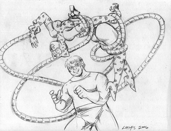 Nice job! I especially like the detail of her restraining the Doc Ock arms to the robot's normal limbs
