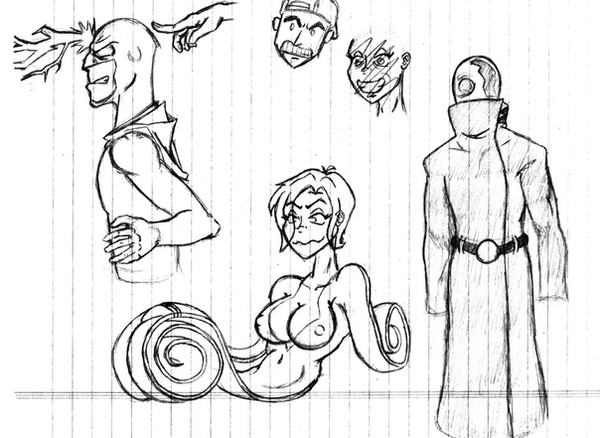 Rubber Bullette stopping for a publicity picture after wrapping up a handful of gunmen. This is obviously a rough sketch, but I think it looks pretty great so far! MORE TO COME . . .Related content